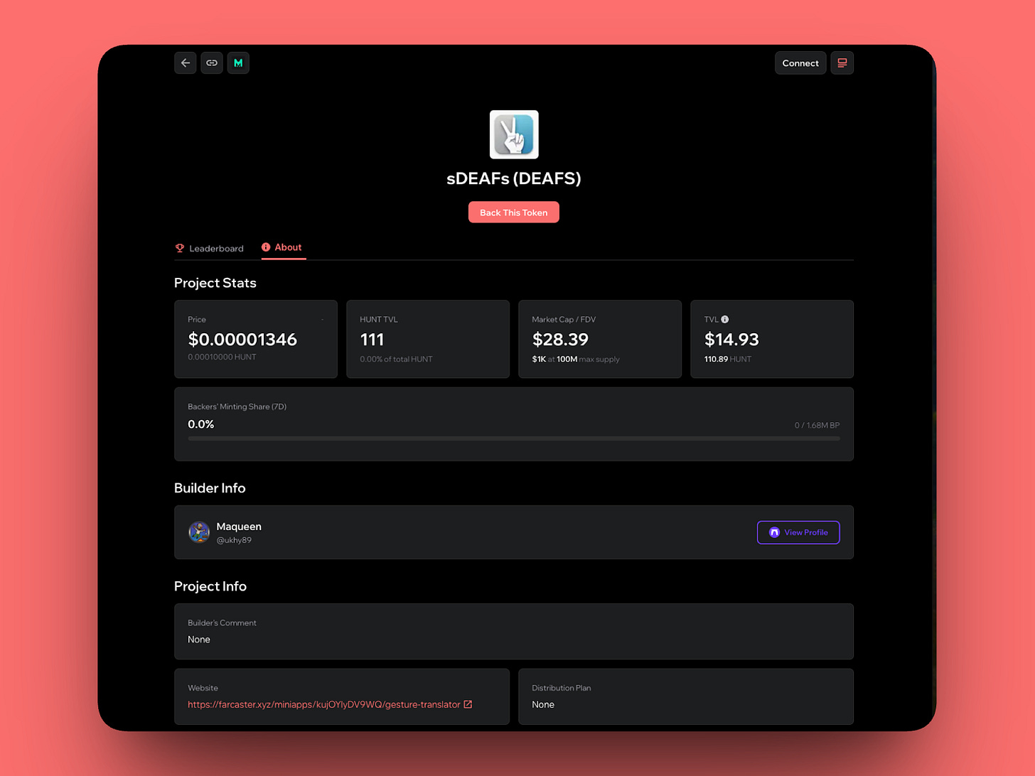 This is the non-profit miniapp, backed by $HUNT. You can donate with ETH, USDC, or sDEAFs to help improve the technology and reach more people in need.