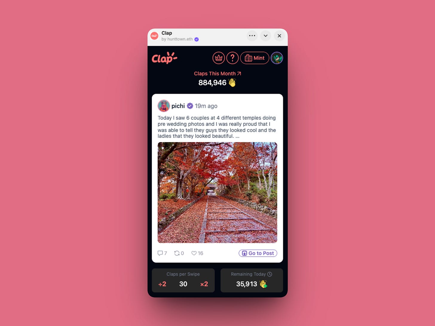 As the ecosystem grew, it became hard to find what to clap for — so we built the Clap App, a mini-app inspired by swipe-right and swipe-up interactions.