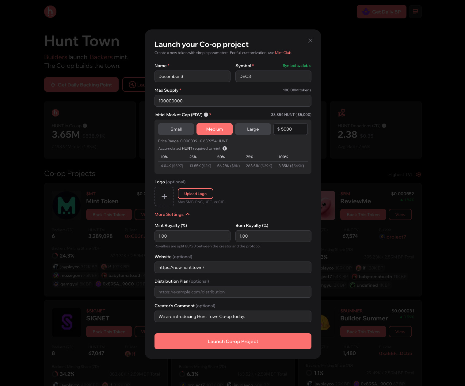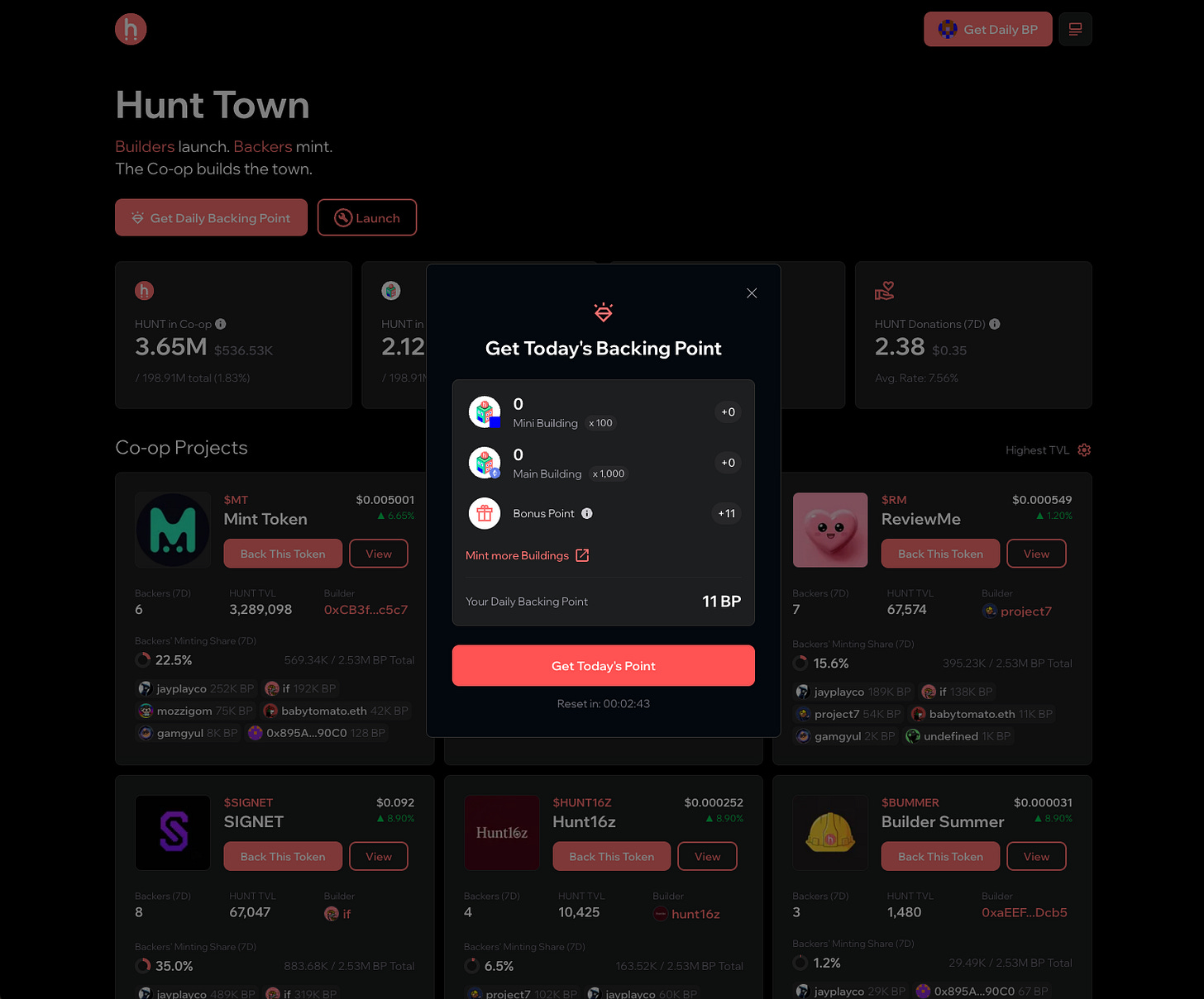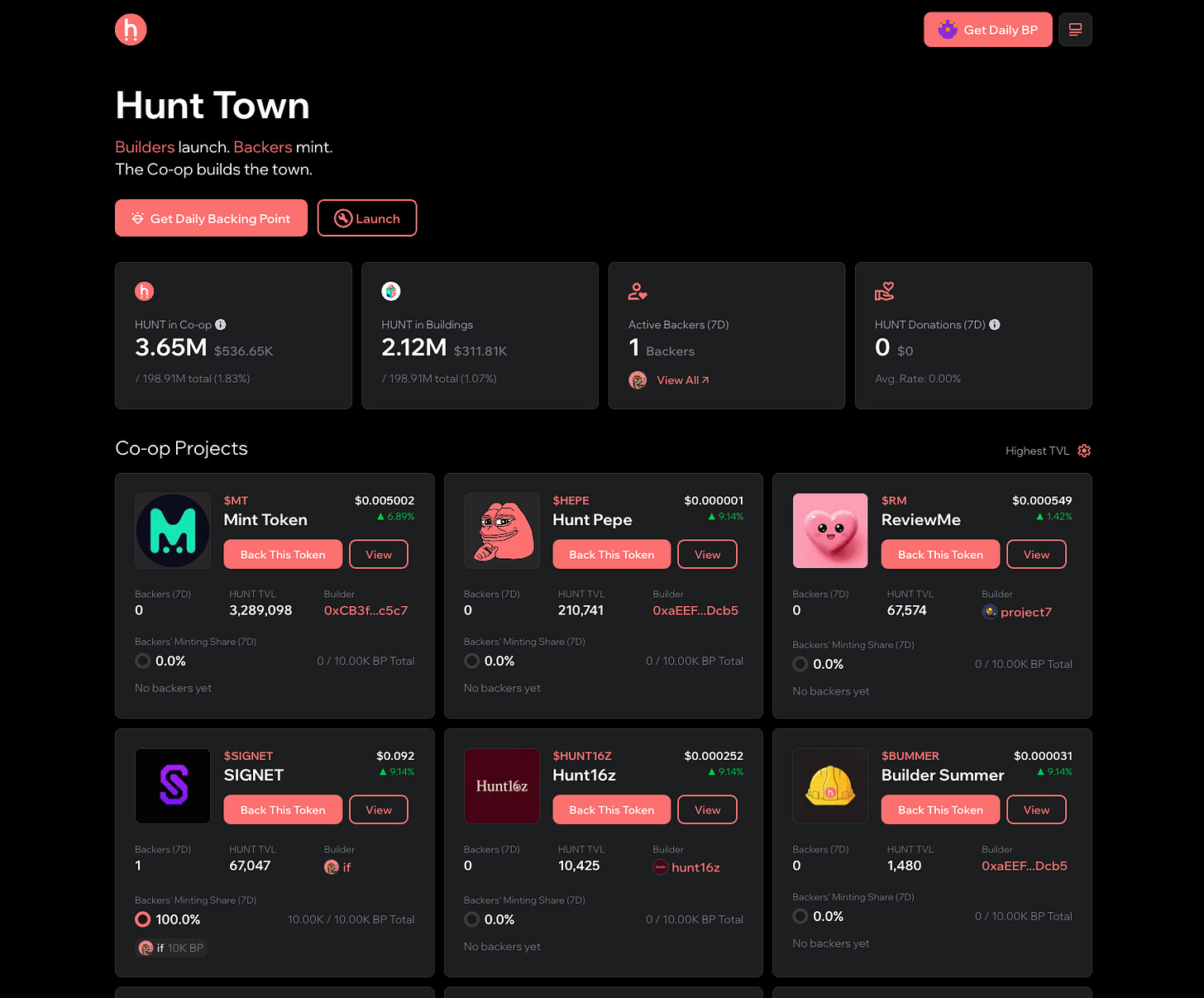 “Do what you do best: Builders launch, backers mint.” – Hunt Town will provide the Co-op environment to make it possible.
