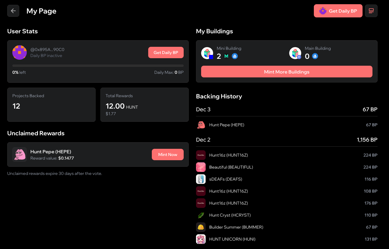 3) Building NFT holding status — more Building NFTs give more Backing Points
