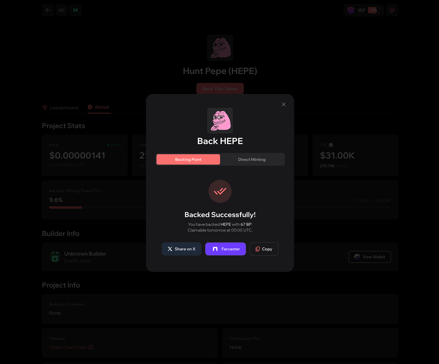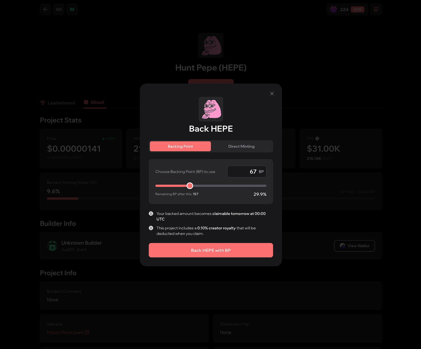 Click “Back this token” and spend your Backing Points. You can use all your points on a single project or allocate portions across multiple projects to support.